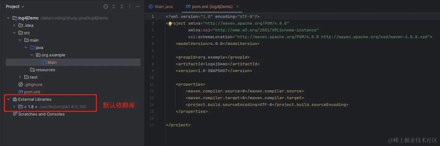 下载完成后,我们就可以看到项目的External Libraries中新增了pom.xml的两个依赖,如下图:
