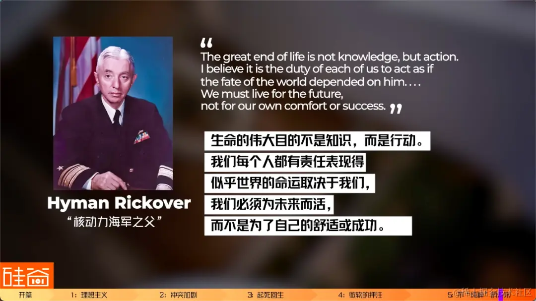 在结尾,我们再回到Sam和一众大佬们刚创立OpenAI的这一天。《纽约客》的文章描述到说:Sam在OpenAI位于旧金山的新办公室做的第一件事,就是走到会议室的墙上,写下有着“核动力海军之父”Hyman Rickover说过的一句名言。