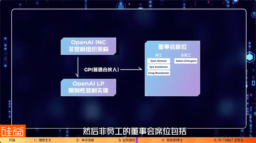 这对双胞胎是2021年11月出生的,是马斯克的第8和第9个娃。Zilis在2016年担任OpenAI的顾问,估计在那个时候认识的马斯克,之后跟随马斯克去了特斯拉,后来去了马斯克旗下的脑机接口公司Neuralink,但一直担任OpenAI的董事。但3月份马斯克开始和Sam对呛之后,估计Zilis也很尴尬,就离开了董事会。八卦时间结束,回到公司架构上。