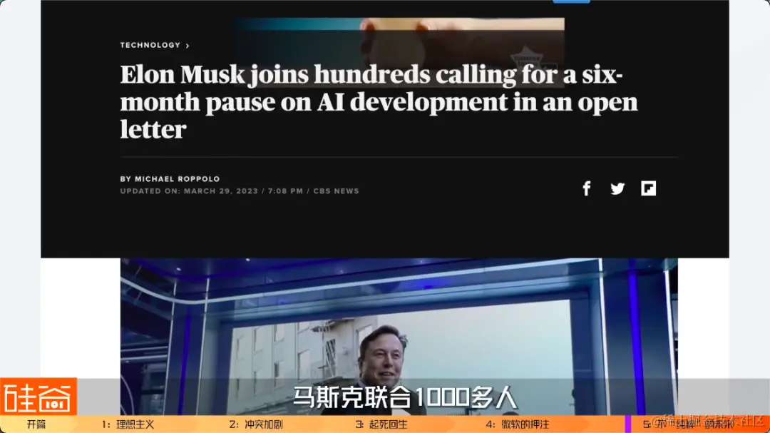 2022年3月底,伊隆-马斯克等一众科技领袖发出联名信,以人工智能的安全担忧为由,要求暂停开发更强大的AI系统。