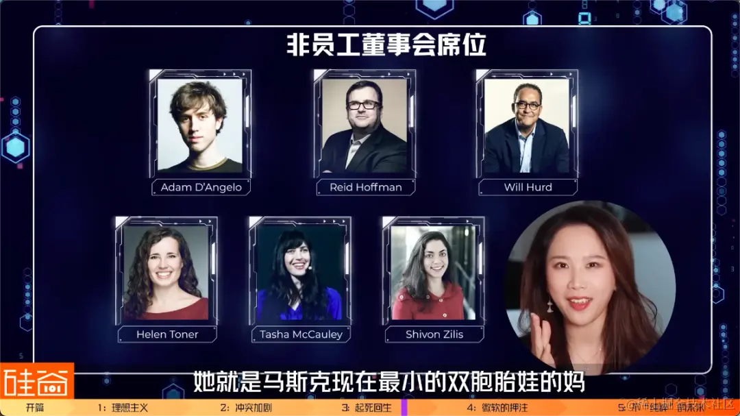 然后非员工的董事会席位包括Quora的联合创始人兼职CEO Adam D’Angelo, 投资人Reid Hoffman, 前共和党联邦众议员Will Hurd, 乔治城大学安全与新兴技术中心战略总监Helen Toner,还有机器人公司Fellow Robots的首席执行官Tasha McCauley(对了,这里插一句,她老公是谁你可能想象不到)没错,就是参演过《和莎莫的500天》《黑暗骑士》《盗梦空间》《史诺登》中的好莱坞文青男神约瑟夫·莱维特Joseph Gordon-Levitt。是不是瞬间觉得这个董事会名单有点八卦了,别着急,还有一个大瓜,你们知道另外一位女性Shivon Zilis是谁吗?她,就是马斯克现在最小的双胞胎娃的妈。是不是这八卦值蹭一下就上去了。