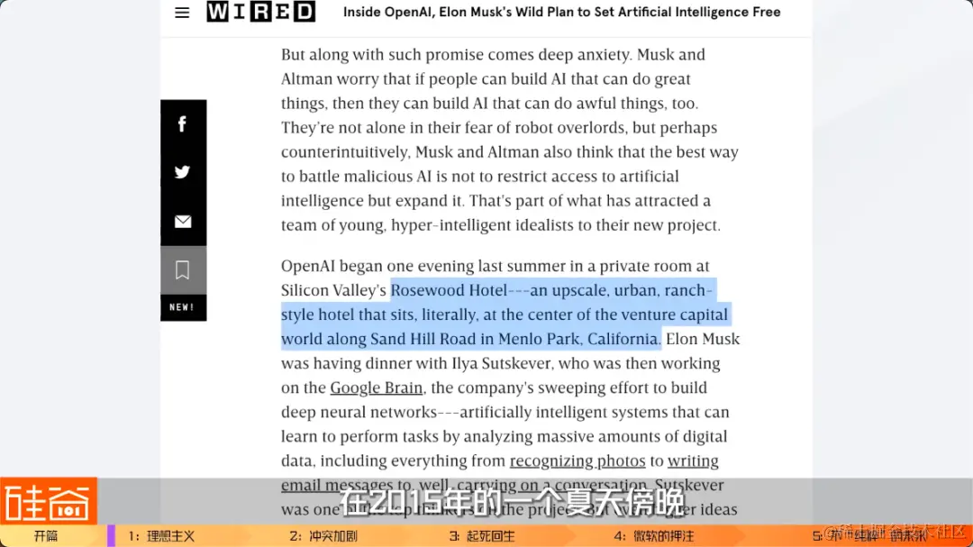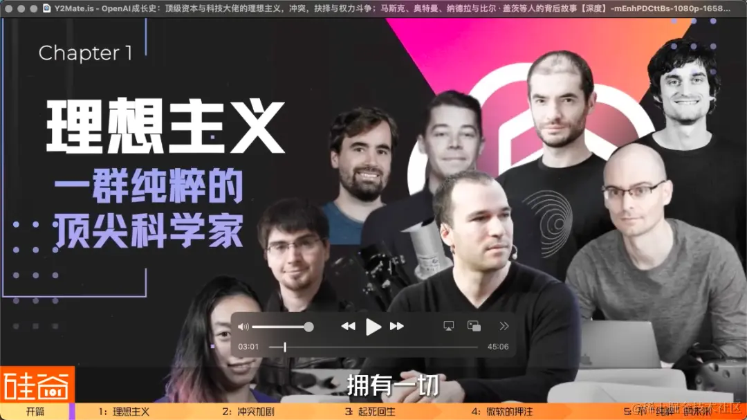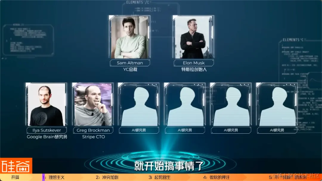 如今现在站在风口浪尖,被神话被仰望但同时又被疯狂批判的公司是谁?没错,就是此轮AI浪潮的领头羊:OpenAI。但OpenAI的成长史并非一帆顺风,背后映射出硅谷的一众大佬、顶级科学家们与资本的理想主义,冲突,抉择和权力斗争。所以,这是一个充满了细节的精彩故事,关于一群拥有纯粹信仰的顶级AI研究员,关于马斯克间接触发了OpenAI的商业化路径,关于OpenAI核心领导人物Sam Altman放弃理想主义去投靠微软,关于微软CEO纳德拉与创始人比尔-盖茨之间的较量,关于ChatGPT惊艳世人背后不为人知的故事。我们硅谷101团队在内部成立了一个AI研究小组,加入了不少从业者,希望从专业的角度来深挖更多有意思的技术和故事。而OpenAI崛起这个故事,将是决定人类未来最重要的故事之一。