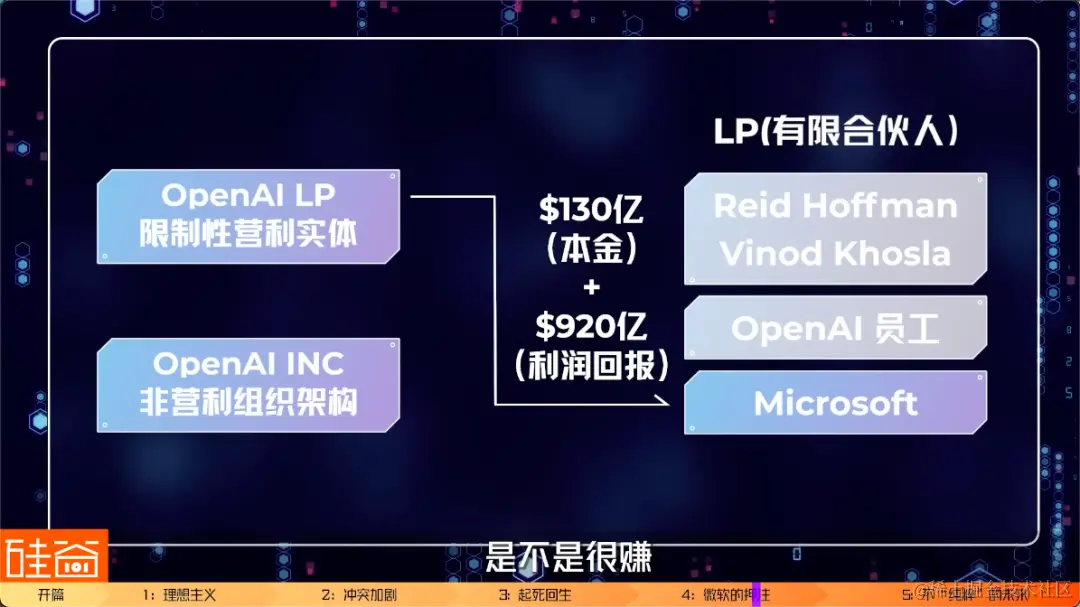 第二阶段:25%利润给到员工和支付投资人的回报上限,剩余75%给到微软直到回本、收回130亿美元投资额;