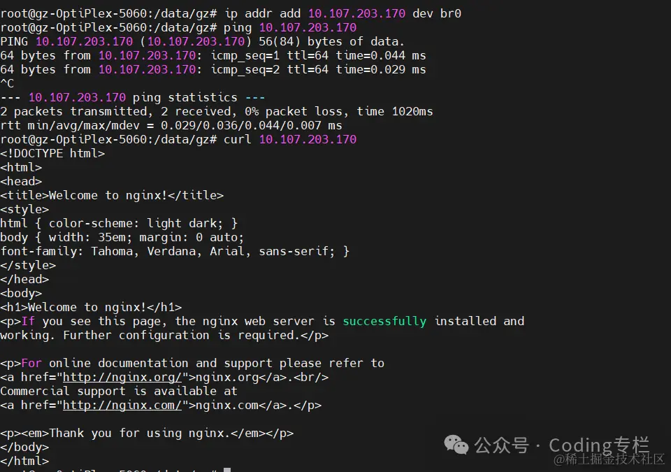 ip addr add 10.107.203.170 dev br0