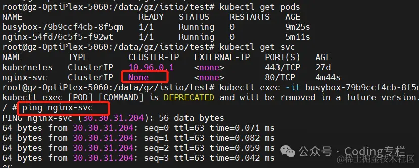 Headless svc 不会分配 clusterIP,而是返回对应 DNS 的 A 记录,如果 svc 后端有3个 pod 则返回 3 个 pod IP。访问 svc 时会随机选择一个 IP,所以 headless svc 是可以 ping 通的。【ping service的名称,就和ping baidu.com 的原理是一样的】