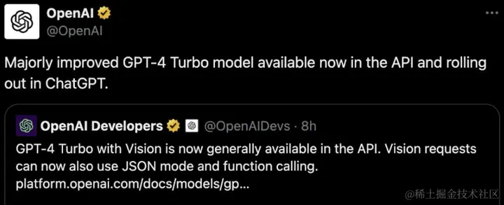 目前 OpenAI 方面宣布,旗下大模型 GPT-4 Turbo 迎来更新,并正式面向 ChatGPT 付费用户(官网Plus订阅用户)开放,包括 ChatGPT Plus、ChatGP Team、ChatGP Enterprise 用户。