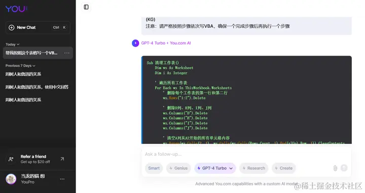 白嫖教程传送门:You.com免费玩一个月GPT4/Claude3 保姆级…