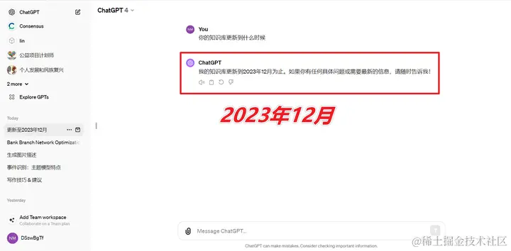 目前来说,OpenAI官网用户已经可以使用GPT4-Turbo,OpenAI逐步把GPT4-Turb推送进GPT4模型内了。你问GPT4它是知识库更新到那个时间,GPT4会回答:他的知识库更新到2023年12月。