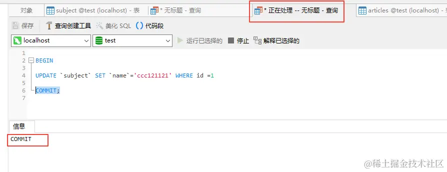 已经更新操作的事务提交语句:这一句优点难理解,直接上代码: