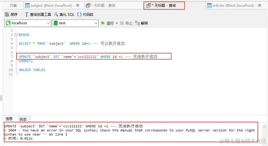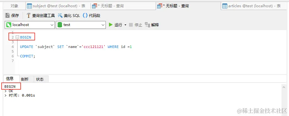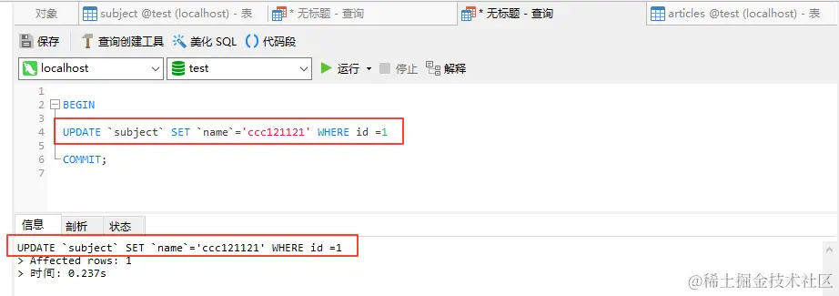 UPDATE `subject` SET `name`='ccc12' WHERE id =1 -- 第二句