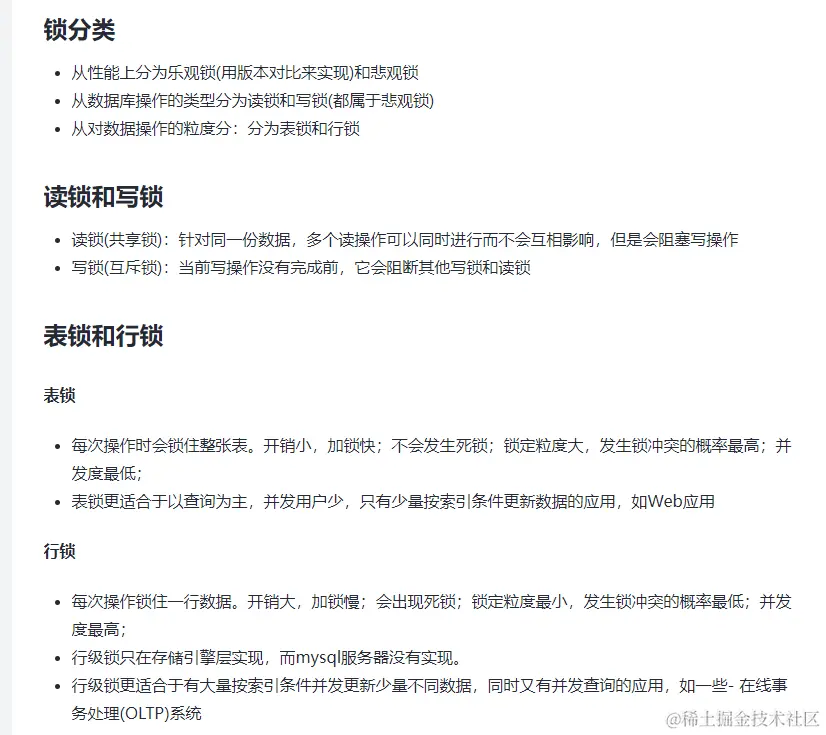 总结一下:其实他俩最大的区别就是作用的范围不同,latch更像是我们日常开发过程中使用到的应用程序级别的“普通锁”。而lock则是为了操作数据库中数据的一种特殊的“事务锁”,平时我们面试的时候面试官问的也主要是这种为了操作数据库中数据而存在的事务锁。