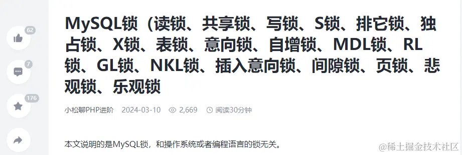 作为一名IT从业人员,无论你是开发,测试还是运维,在面试的过程中,我们经常会被数据库,数据库中最经常被问到就是MySql。当面试官问MySql的时候经常会问道一个问题,”MySQL中有哪些锁?“当我们去网上找相应的资料的时候却是五花八门,张三说的一个样,李四说的另一个样。 like this....