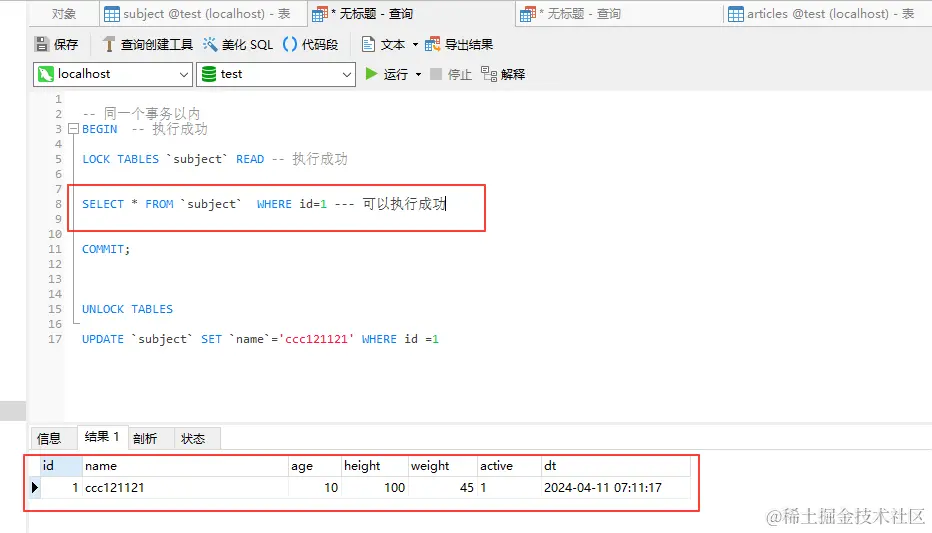 我们先将表上锁🔒: