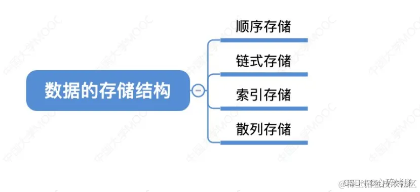 4)散列存储。 根据元素的关键字直接计算出该元素的存储地址,又称哈希(Hash)存储。