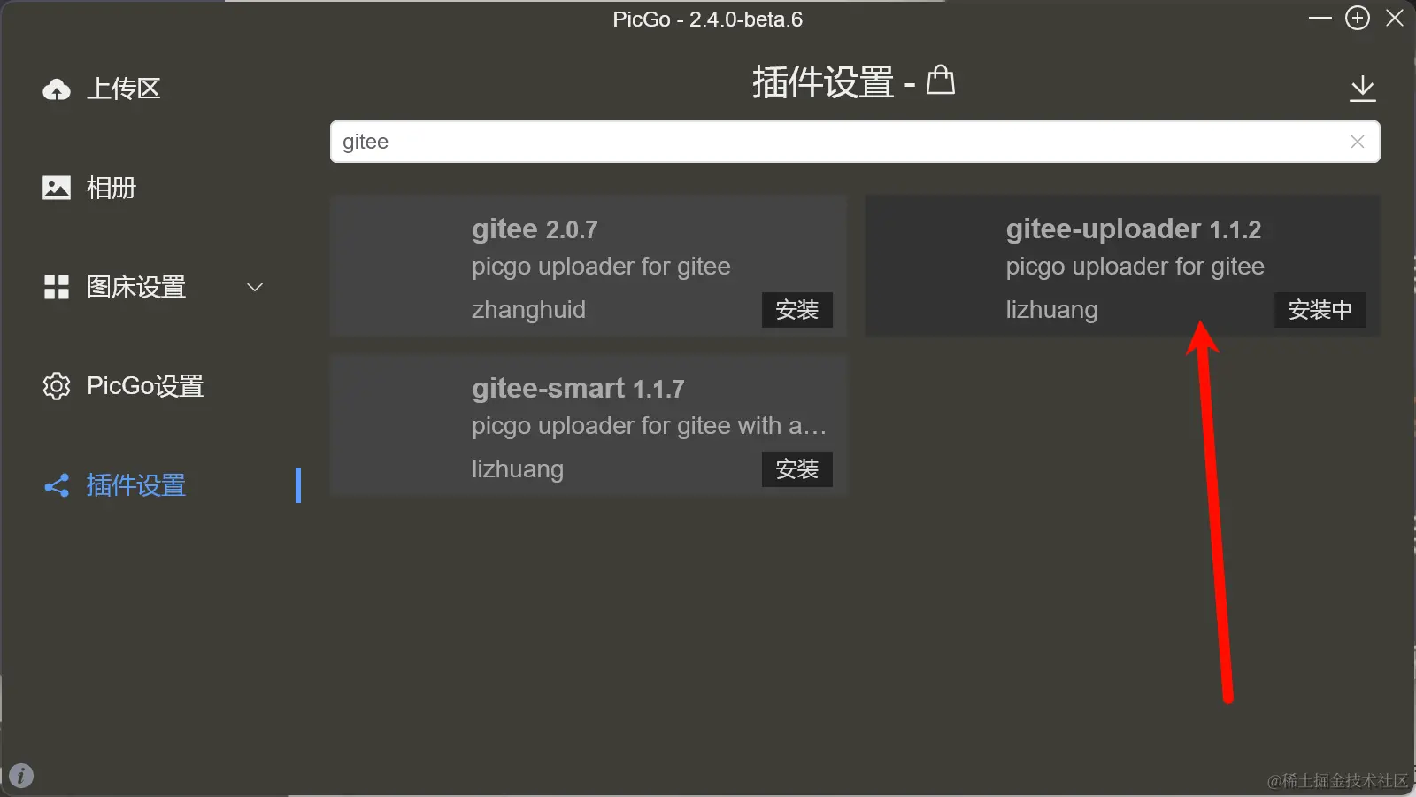打开点击插件设置,上方搜索“gitee”,我安装的是1.1.2版