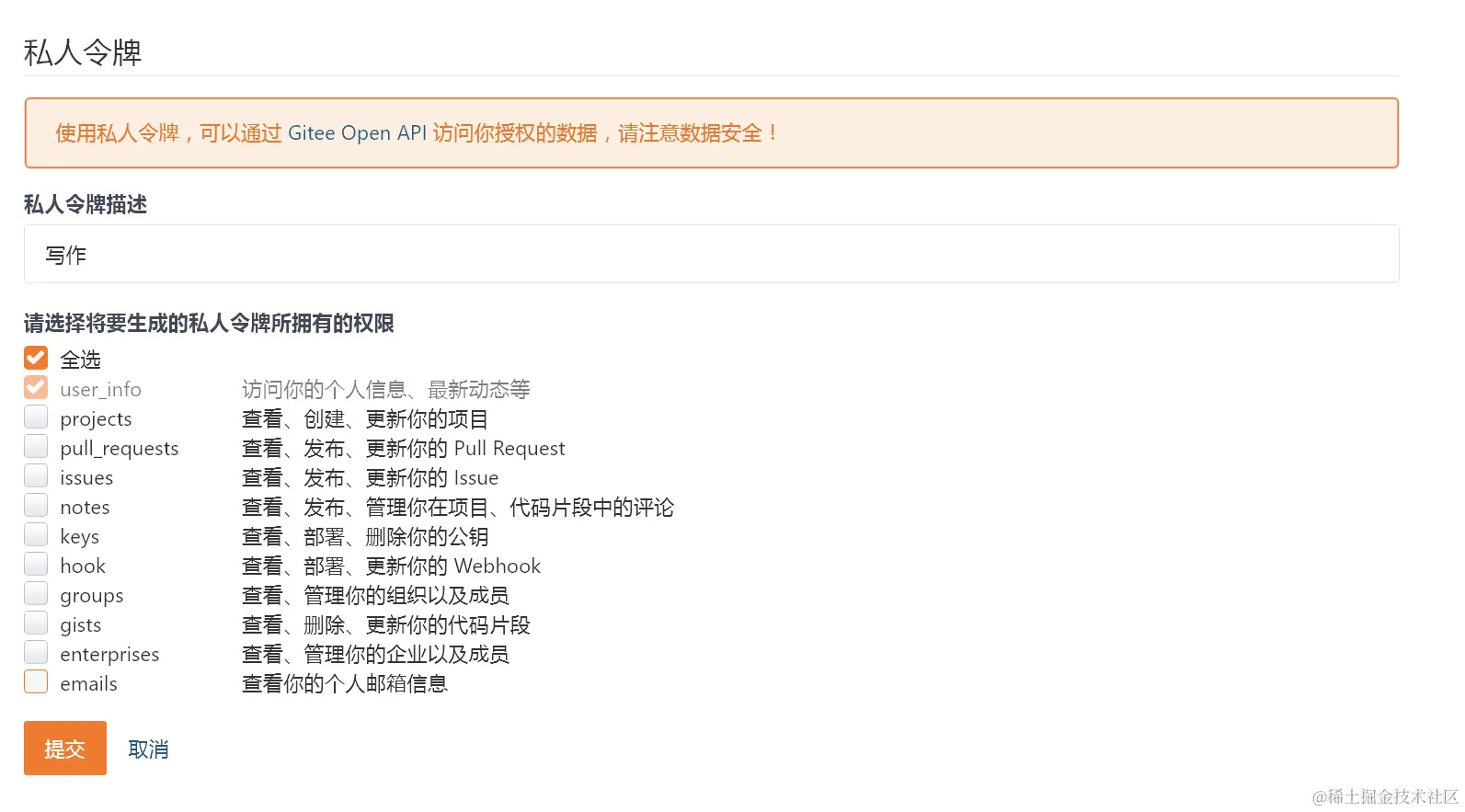 3.token 由gitee生成 - 私人令牌