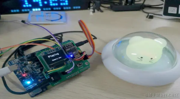 我基于这个开发板制作了一款桌面小工具,它是一个小巧、功能丰富、具有实用价值的桌面物联网“控制中枢”。可以实现: 精灵播放音乐时内部有一颗呼吸灯的效果; 精灵可以通过OLED显示当前音乐名字、播放状态; 精灵可以自动连接到MQTT服务器,实现网络交互; 精灵可以通过红外遥控,实现音乐切换和暂停播放; 精灵可以通过手机连接热点配网,配置联网信息,连接 WIFI; 精灵连接有功放模块实现播放TF卡中的音乐; 精灵连接有一个RGB彩灯,在一个精致小夜灯中实现彩虹灯的效果; 精灵连接有一个灯管,实现联网控制灯管,冬天再也不用下床关灯了; 精灵配有自主设计的微信小程序端应用,通过MQTT服务器来实现和精灵的交互。