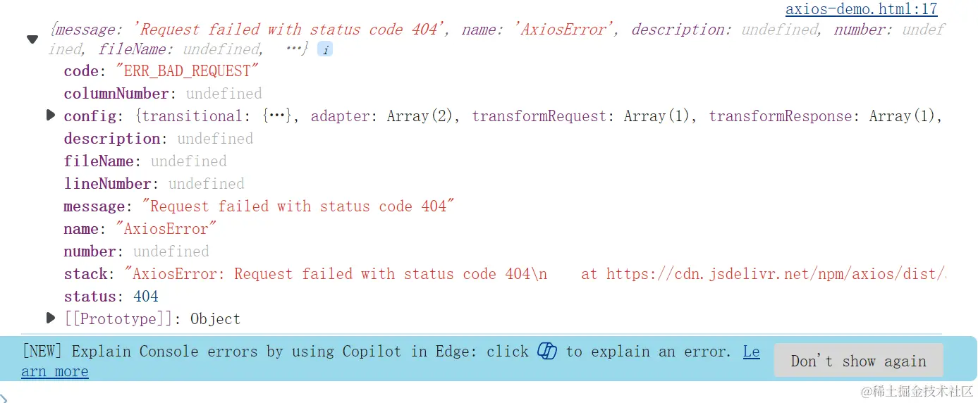 使用 toJSON 可以获取更多关于HTTP错误的信息。