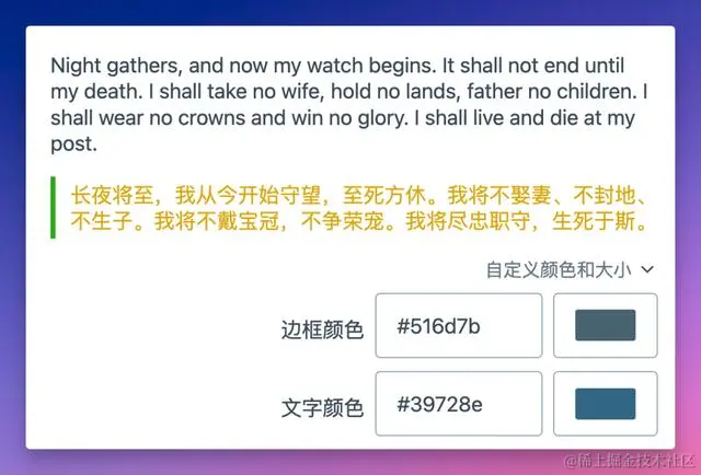 你还可以调整译文的颜色字体和显示样式,比如加下划线、波浪线、引用样式等。
