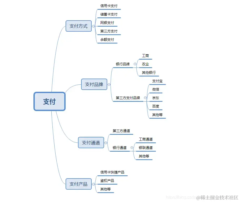 首先,根据不同维度,通常我们可以把支付分为如下图所示的种类:
