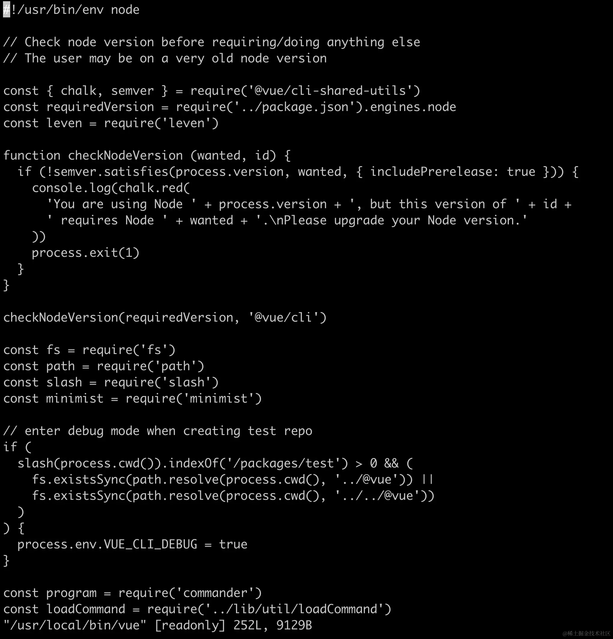 通过 vim 打开文件,就是vue脚手架的执行文件