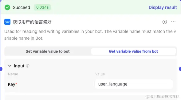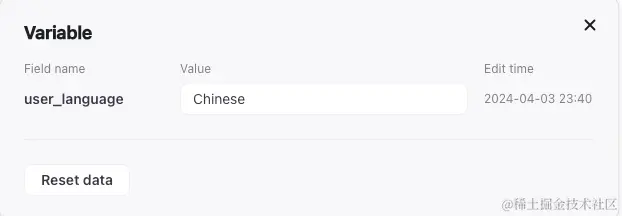 这里我使用了一个变量节点,来控制大模型的输出语言