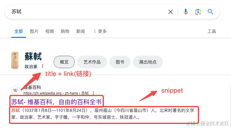 - link:也就是谷歌搜索出来的条目的网址