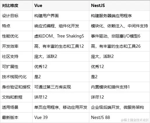 从上表可以看出,Vue和NestJS各有其优势和适用的场景。Vue在构建用户界面方面表现出色,特别适合单页应用程序和移动应用开发。NestJS则在构建服务器端应用程序方面更为专业,尤其适合企业级的后端开发和微服务架构。两者结合可以提供一套完整的解决方案,用于构建高性能、可扩展的企业级管理后台应用1234689。