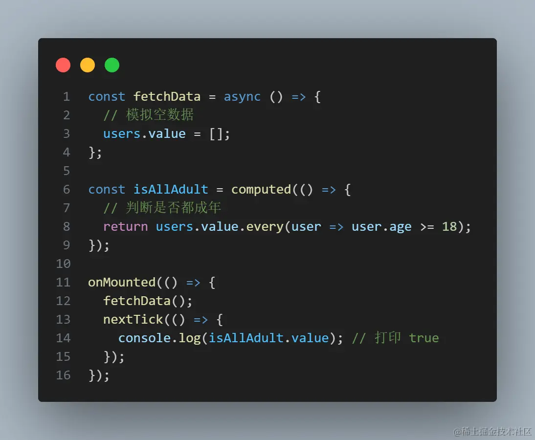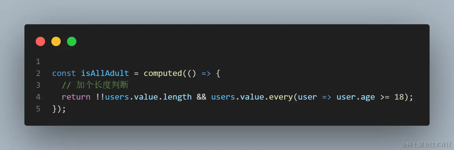但是这个代码却出现了BUG,什么呢?就是当 users 是空数组的时候,every 会返回 true!!!不信我们可以看看