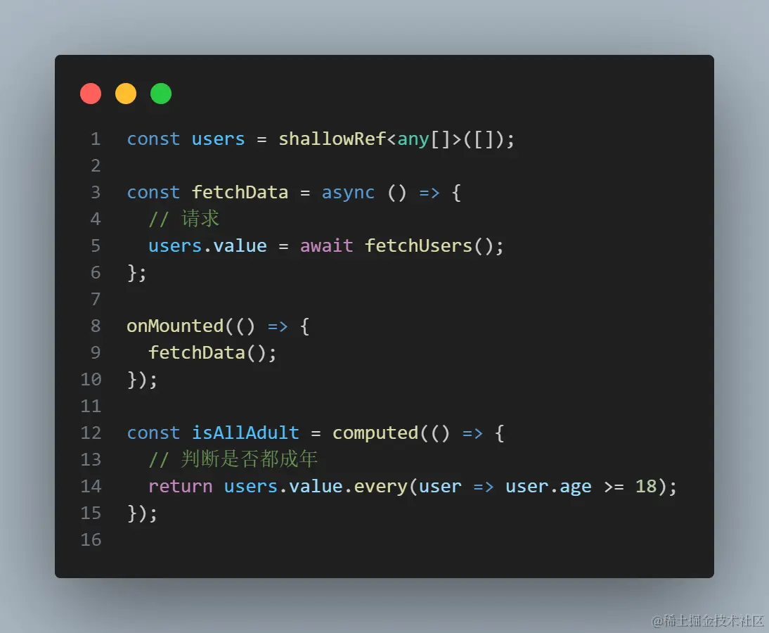 再来项目中搞的代码吧,逻辑也跟上述例子差不多,就是通过请求获取一组用户,并判断这组用户是否全都已成年