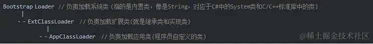 有三种默认使用的类加载器:Bootstrap 类加载器、Extension 类加载器和Application 类加载器。每种类加载器都有设定好从哪里加载类。