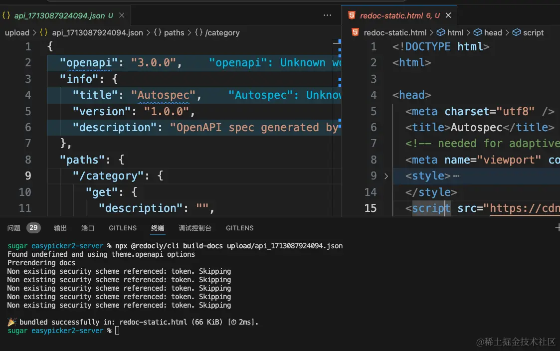 接着可以使用 Redoc 生成文档。