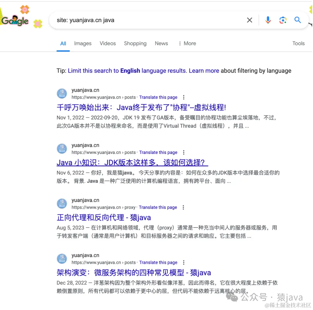 比如,在 yuanjava.cn 网站上搜索 java相关的内容