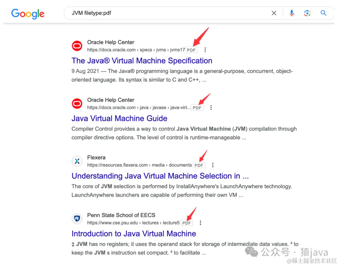 比如,搜索关于 JVM的 pdf文档,如下图:
