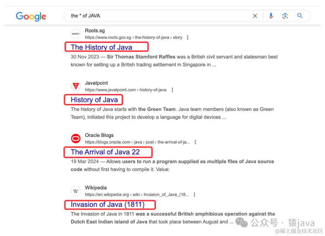 如果在搜索时,某些核心的关键词不记得或者不知道怎么拼写,可以使用通配符*,Google会用相关的词汇来替换通配符,