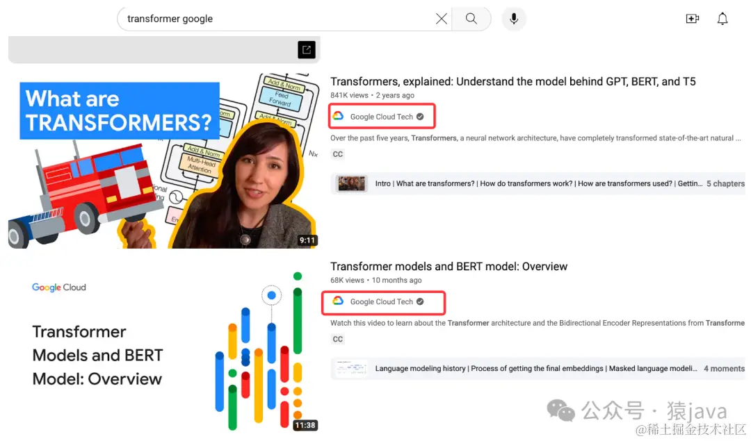 比如,如果想学习下 Google的 transformer神经网络,可以搜索 transformer google,搜索结果的前几条视频都是 Google官方频道发布的: