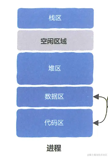 让我再来仔细的想一想这个问题,所谓进程无非就是内存中的一段区域,这段区域中保存了 CPU 执行的机器指令以及函数运行时的堆栈信息,要想让进程运行,就把main函数的第一条机器指令地址写入 PC 寄存器,这样进程就运行起来了。