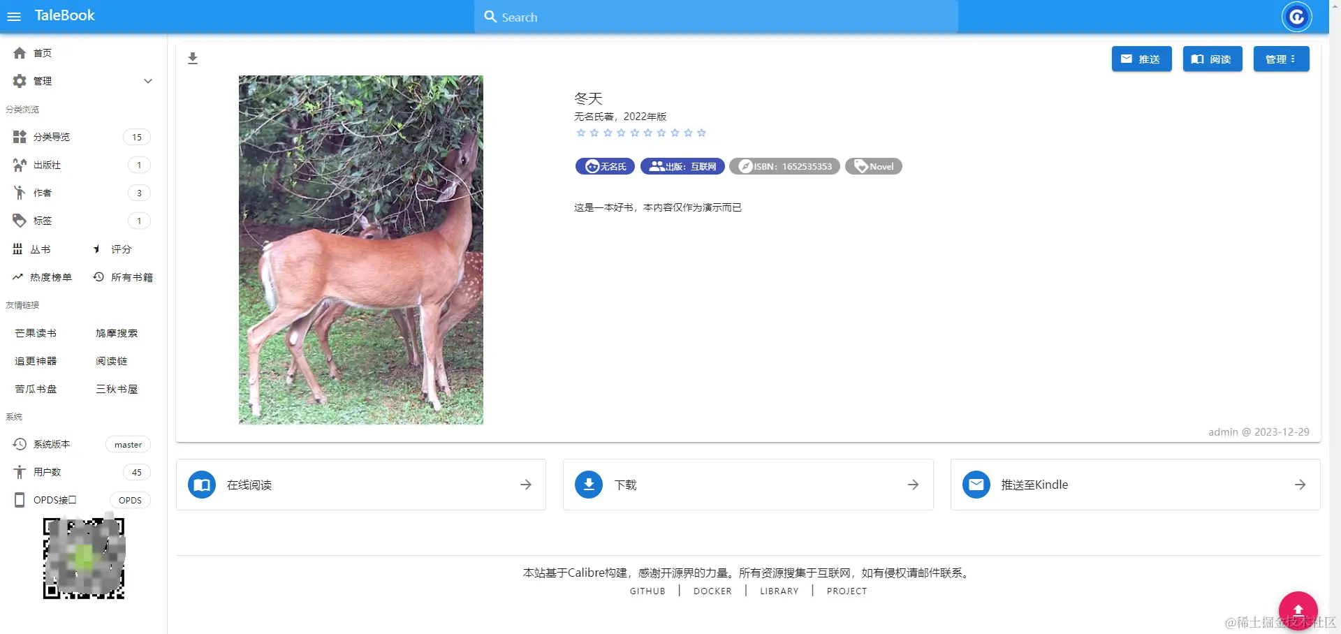 今天,给大家介绍一个在线的个人图书管理系统,支持在线阅读。