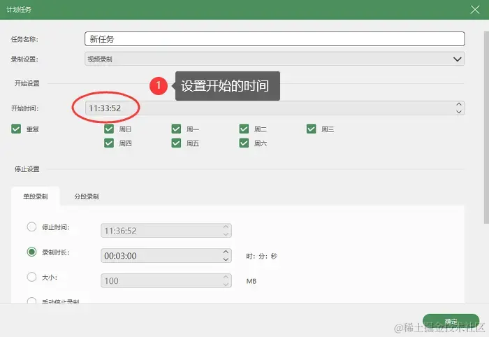 步骤3:软件支持定时录制功能,可以添加一个新的录制任务,并设置好开始的时间和日期,软件就会自动开始录屏。