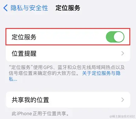要关闭整个定位服务,请点击顶部的**【定位服务】**开关,将其切换为关闭状态。