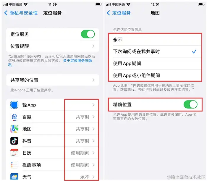 **精确位置VS大概位置:**在关闭定位服务时,您还可以选择仅允许应用程序获取大概位置信息而不是精确位置信息。这可以帮助保护您的隐私并减少电池消耗。