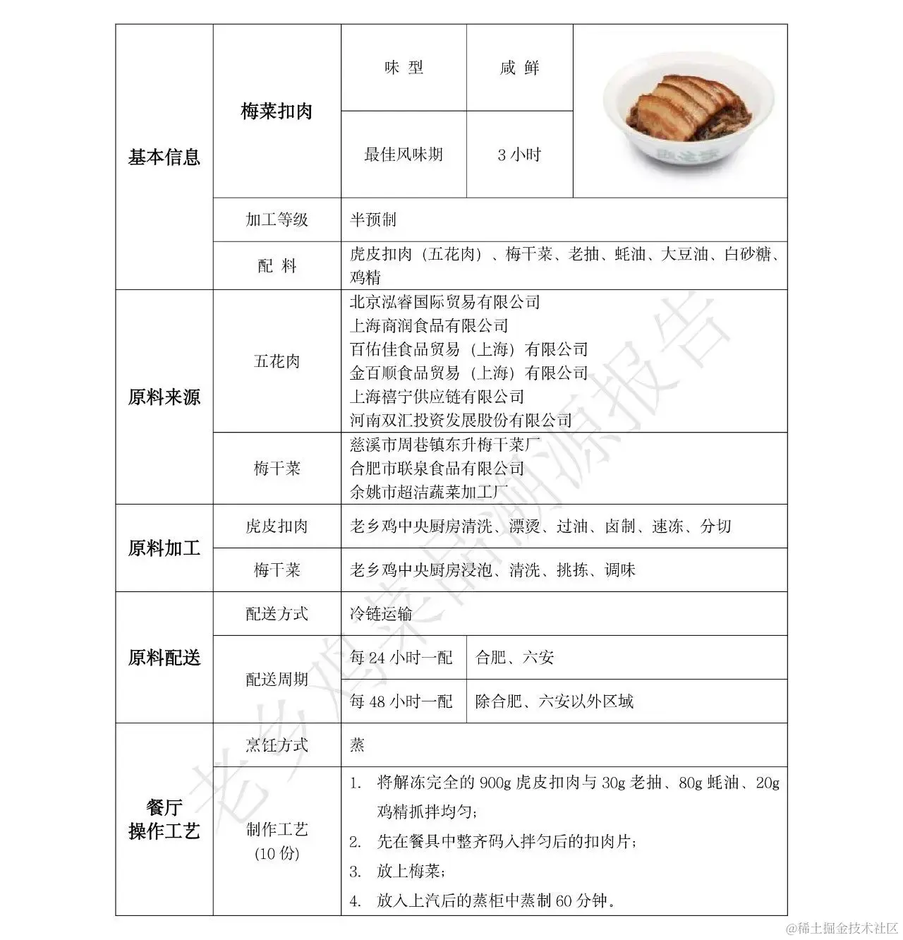 据称老乡鸡溯源了 1218 家门店共计 226 个 SKU 和 873 种原料,并公开了 677 页共 20 万字的菜品溯源报告,公开了每一项食材来源、加工、配送细节和所有菜品的烹饪方法(精确到多少克盐等细节)以及 202 家供应商信息等。