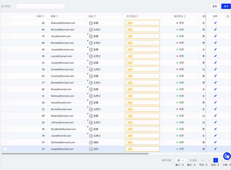 目前该功能已在项目上有过实践,他们提出的具体需求是为了批量修改人员状态和计算员工绩效总和。