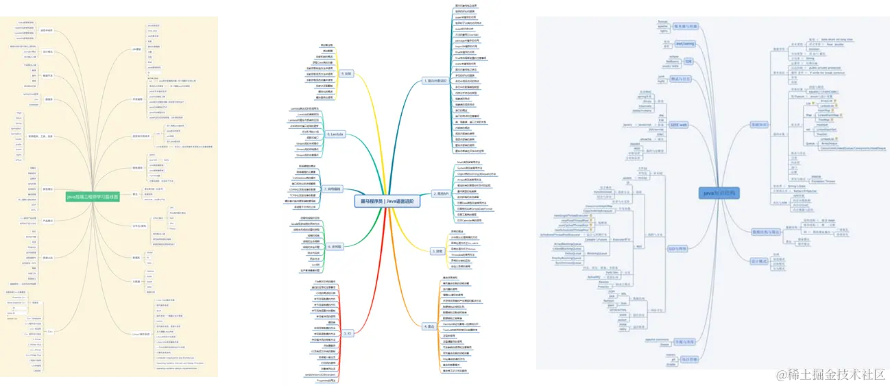 这里就不得不提到学习路线了。现在市面上有好多学习路线,给大家粗略看几眼,是不是密密麻麻,密恐症都快犯了。