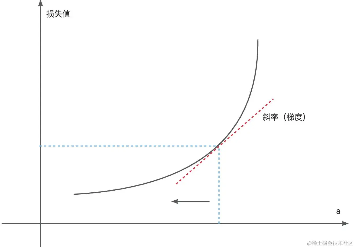 我们希望改变a的值,让损失值变小,因此,我们就可以对PG(a,x,b)求a的导数,让a沿着斜率(梯度)下降的方向变化。