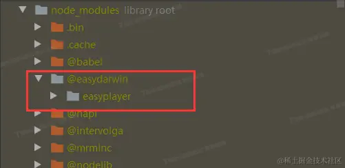 2)然后找到项目node_modules中的easydarwin,如下: