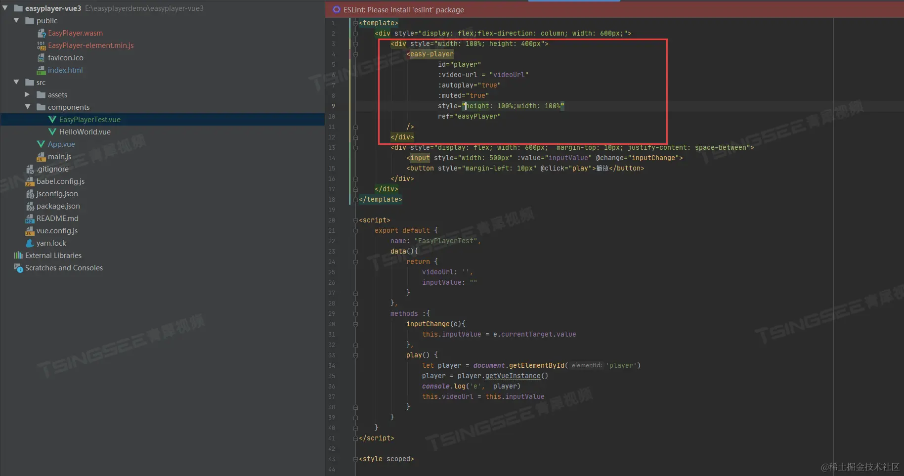 6)完成以上操作后,就可以在vue组件中直接使用EasyPlayer播放器了。
