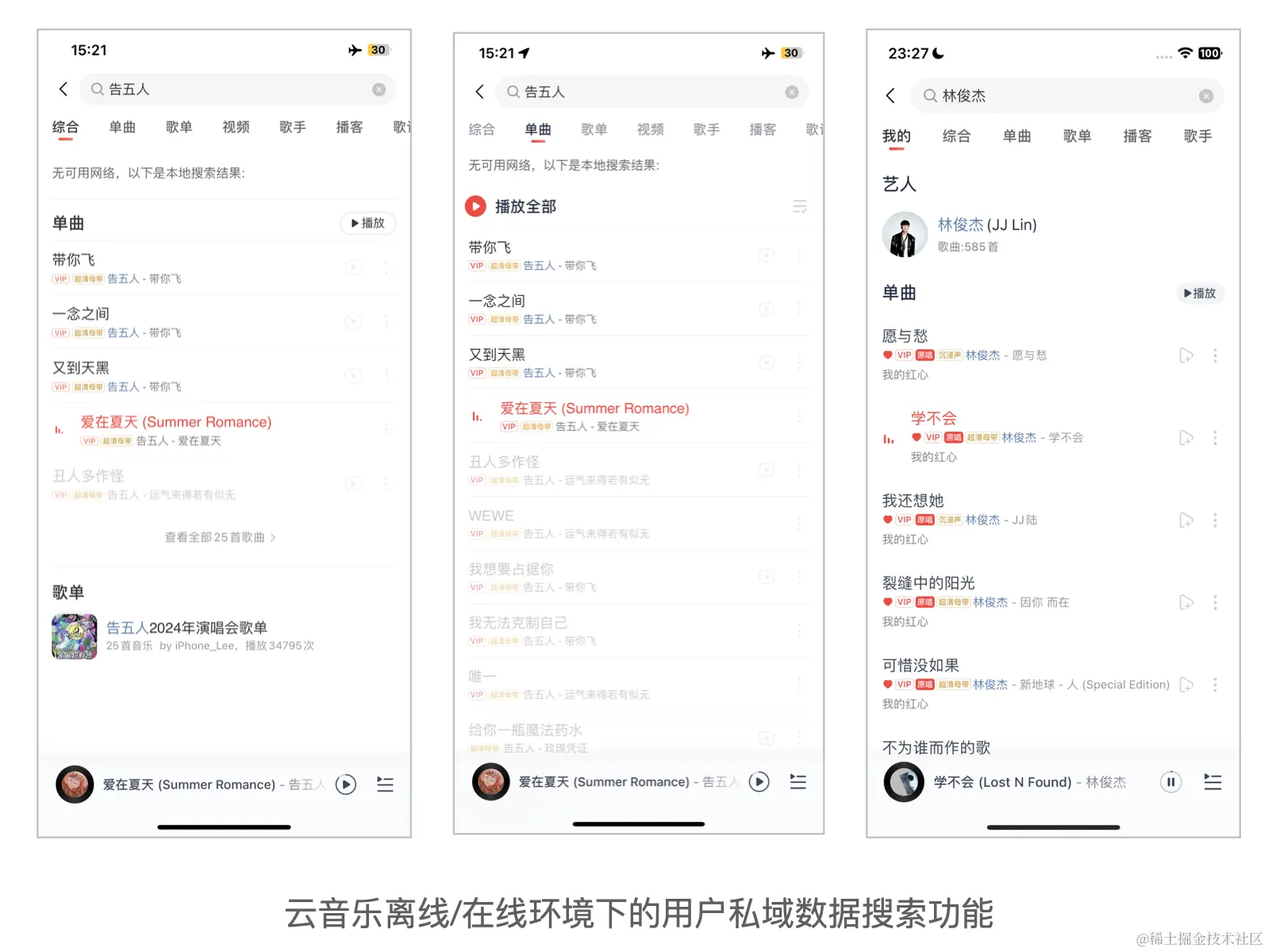 随着用户持续使用云音乐,私域数据持续不断积累,私域数据搜索的诉求反馈也越来越多,比如找到自己众多歌单里五月天的歌曲,某首只记得若干关键字的红心歌曲,等等。目前云音乐已通过内置一个轻量级本地搜索引擎实现了该功能,相比由服务端完成用户私域数据检索,返回结果由客户端展示的方案,本地搜索引擎在保护用户数据隐私、节省云端存储成本、降低检索耗时、支持离线搜索上有着天然优势。