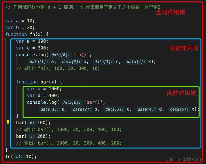 - 局部变量(function函数体中用var声明的变量、function函数的形参)的作用范围是局部