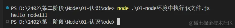第二种方式 在vscode找集成终端 node 03...(tab按键会自动补全) 把默认改为powershell 常用!